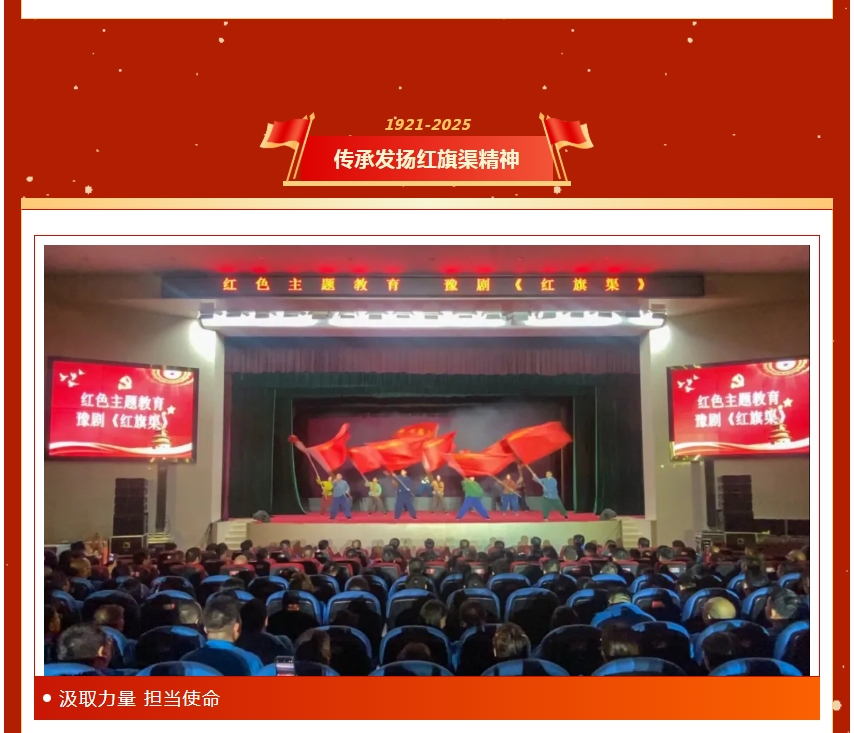 表彰大会后,全体参会人员共同观看了由党建共建单位河南豫剧三团带来的豫剧《红旗渠》,自力更生、艰苦创业、团结协作、无私奉献的红旗渠精神历久弥新,大家在欣赏精彩演出的同时,从中汲取澎湃的精神力量。